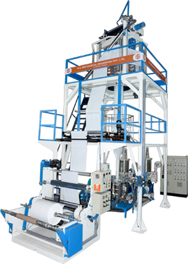 This A-B-A Blown Film Extrusion Machine is basically a Blown Film Plant producing a THREE LAYER FILM but with the TWO EXTRUDER.